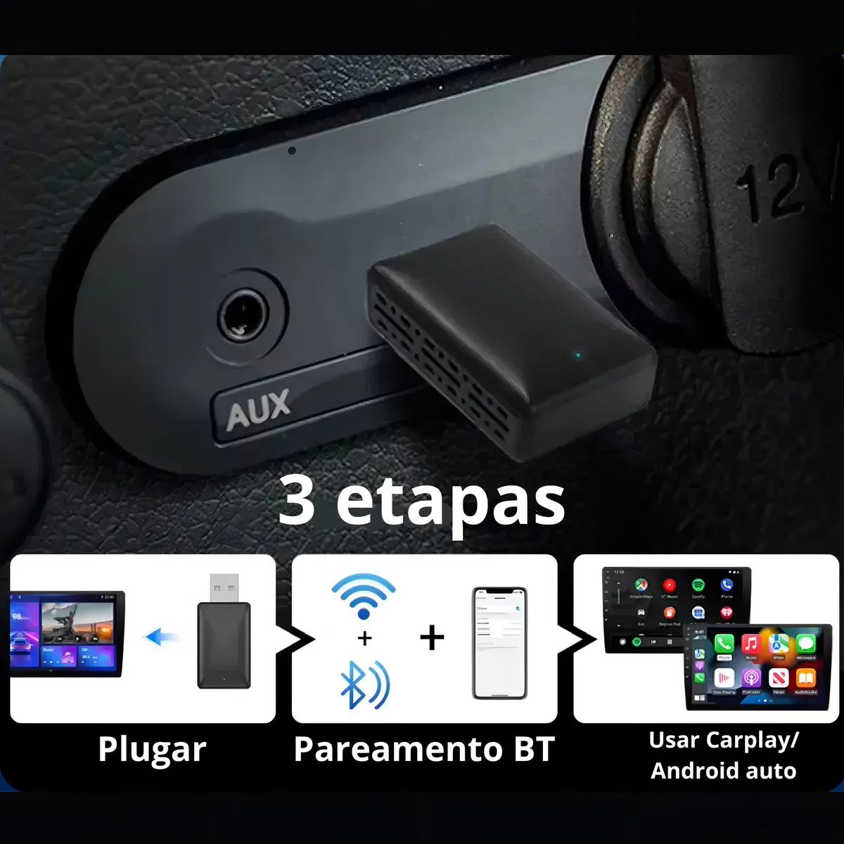 Mais informações sobre este produto: Adaptador Android Auto Carplay Sem Fio Automático Bluetooth