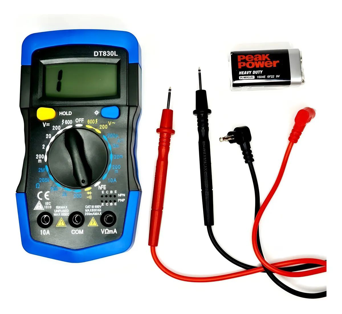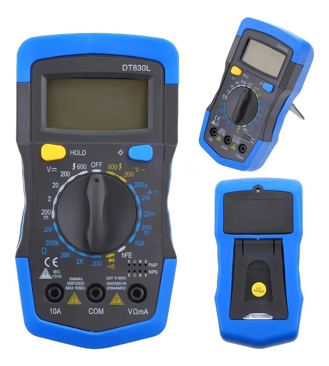 - O Multímetro Digital DT-830L é um dispositivo versátil e essencial para eletricistas, técnicos e entusiastas da eletrônica. Além das funcionalidades padrão de medição de tensão, corrente e resistência, este modelo inclui recursos avançados para teste de diodos, ganho de transistor hFE e verificação de continuidade. Compacto e fácil de usar, é ideal para diagnóstico de circuitos e manutenção de equipamentos eletrônicos, oferecendo precisão e confiabilidade.