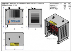 Auto Transformador Trifásico a Seco Potência: 20kVA Tensões: 380V / 220V C/ CAIXA IP23