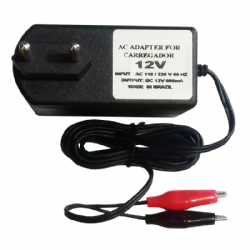 Fonte Carregador de Bateria 12Vdc 800mAh 110/220V FLUTUADOR
